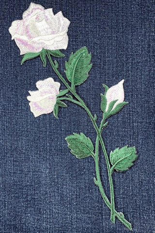 Extra Large White Rose Applique Patch - Embroidered Flower Badge 10.5" (Iron On)