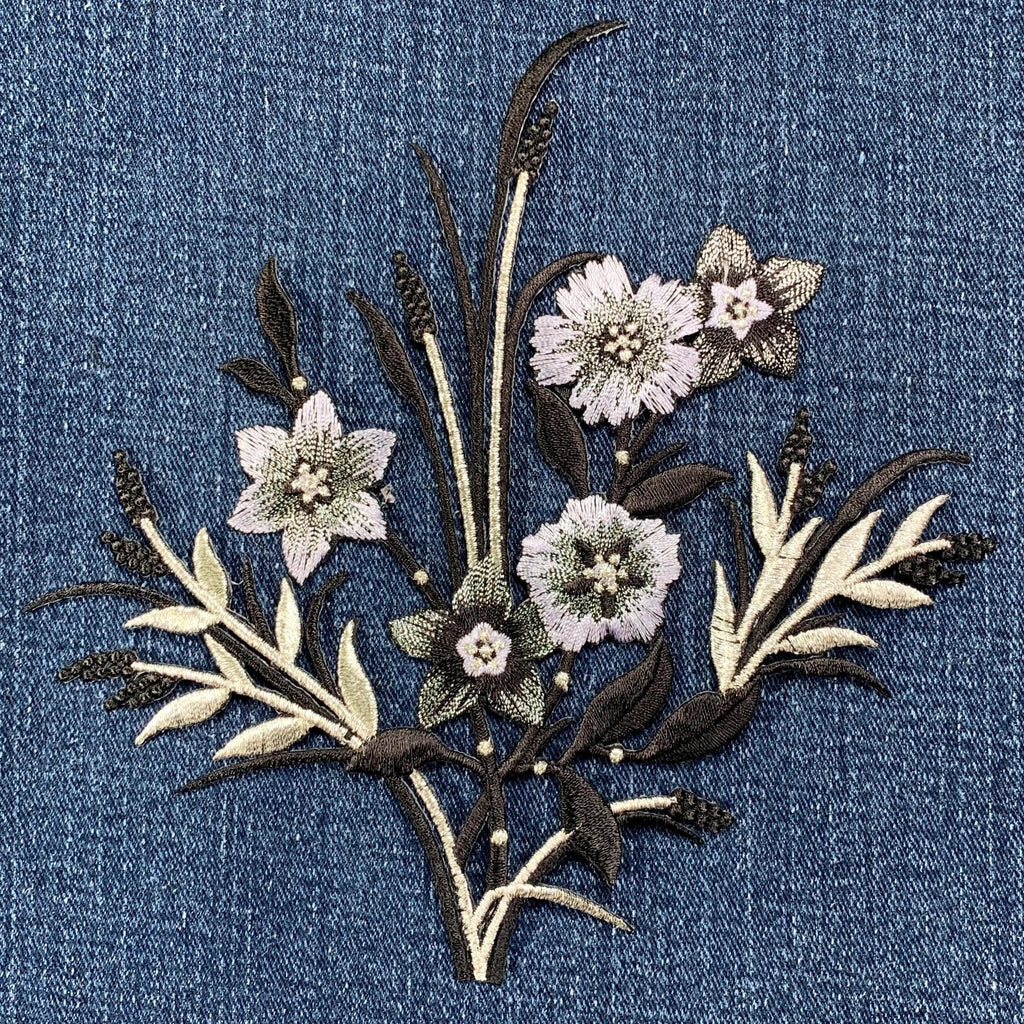 Flower Applique Patch - Large Embroidered Arrangement Silver Black & White 6-3/8" (Iron On)
