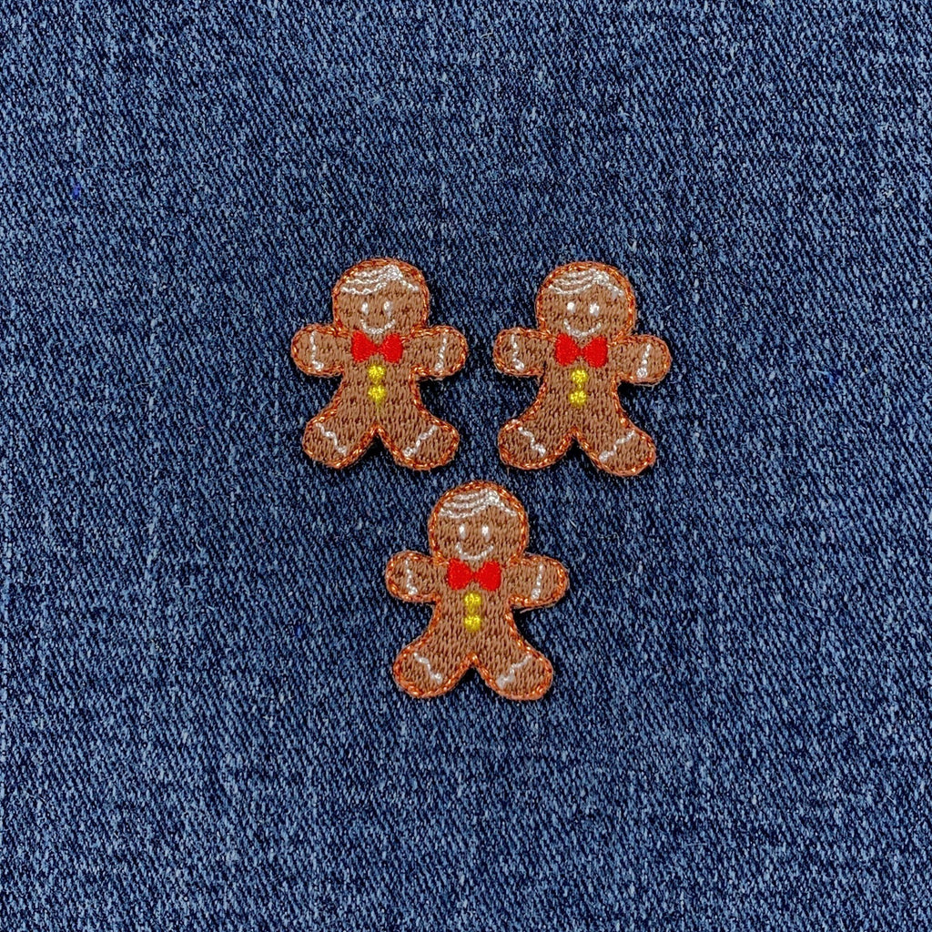3-Pack Gingerbread Man Applique Patch - Embroidered Christmas Cookie Badge 7/8" (Iron On)