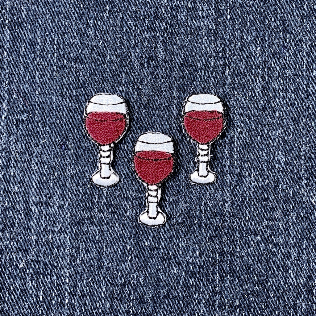 3-Pack Glass of Wine Applique Patch - Mini Embroidered Bar & Restaurant Badge 1" (Iron On)