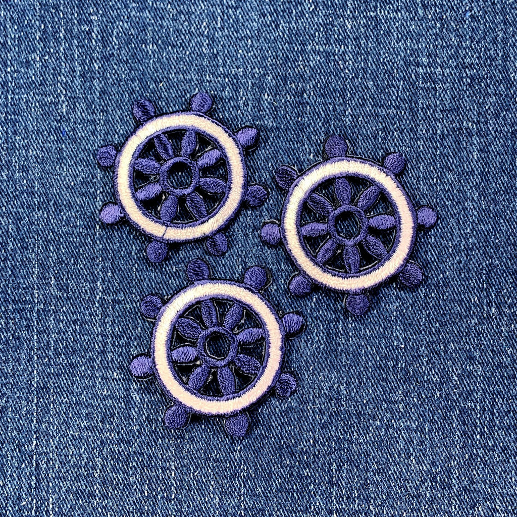 3-Pack Ship's Wheel Applique Patch - Embroidered Sailing Badge 1.75" (Iron On)