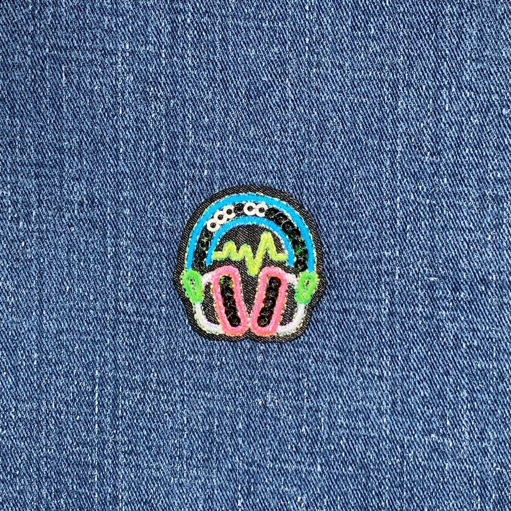 Sequin Headphones Applique Patch - Embroidered DJ Music Badge 1.5" (Iron On)