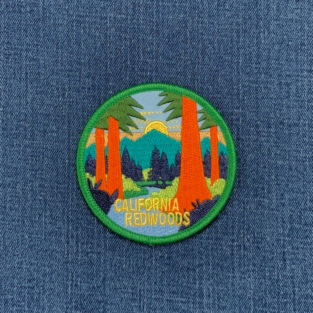 California Redwoods Patch - Embroidered Hiking Badge 3" (Iron Or Sew On)
