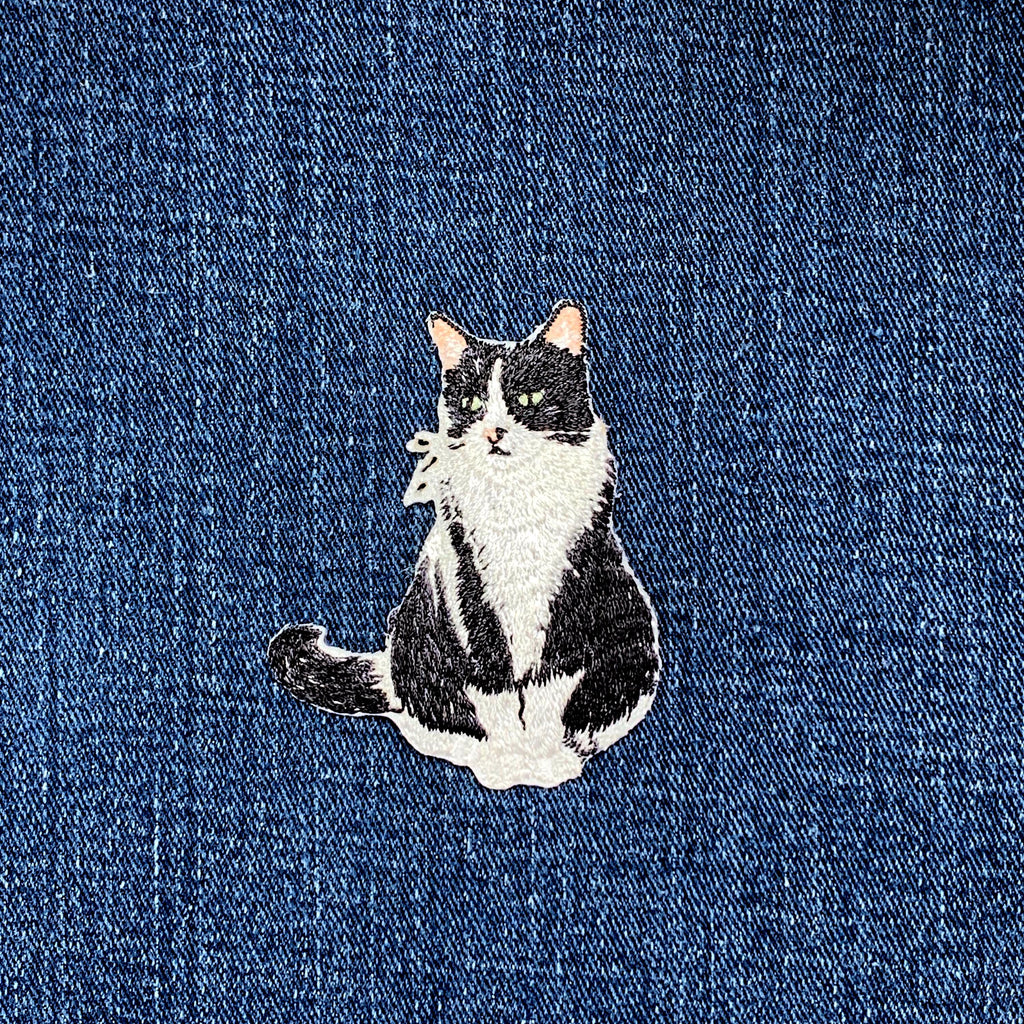 Tuxedo Cat Applique Patch - Embroidered Pet Kitten Badge 2.5" (Iron On)