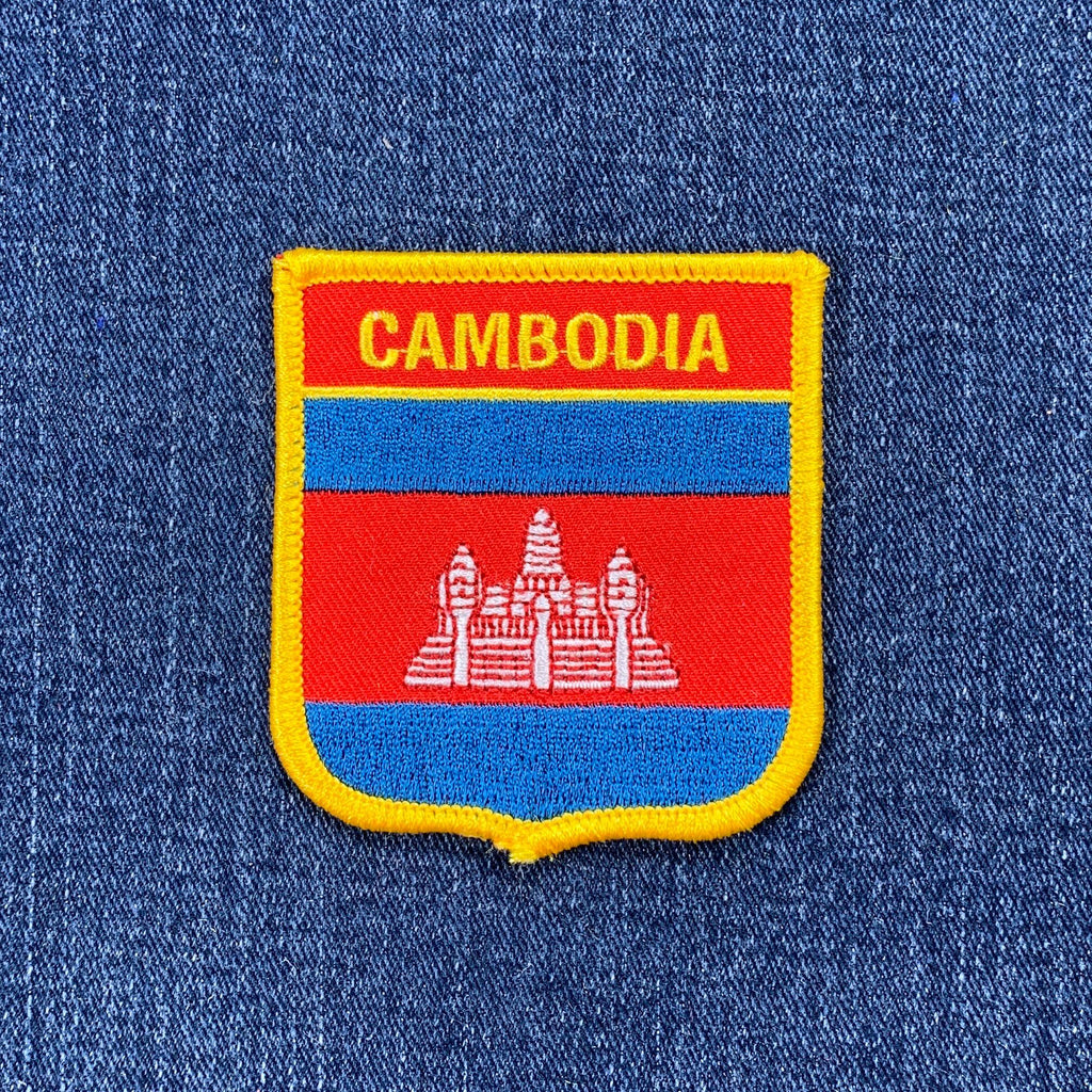 Cambodia Patch - Embroidered Flag Shield Badge 2.75" (Iron On)