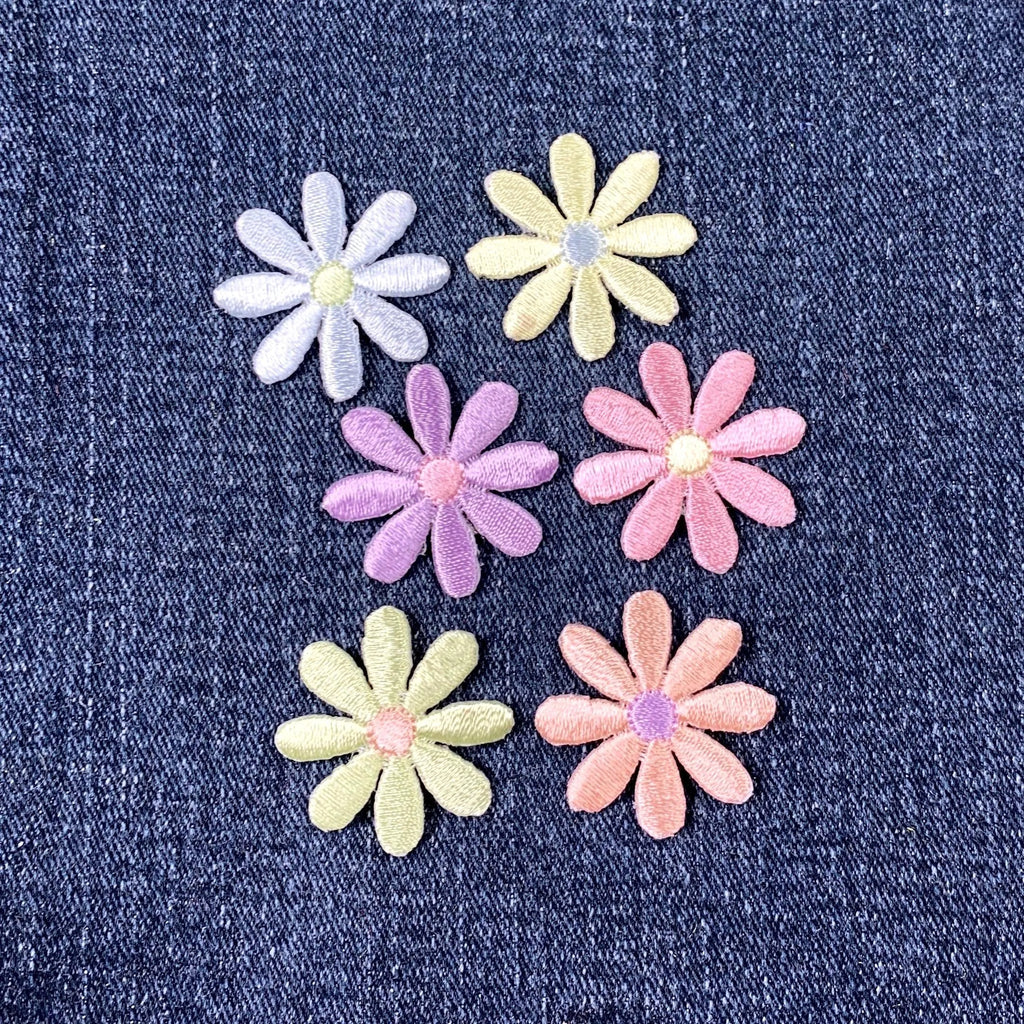 6-Pack Daisy Applique Patch Set - Embroidered Flower Badges 1-1/8" (Iron On)