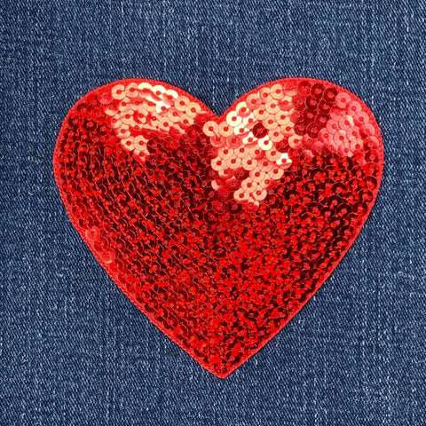 Extra Large Sequin Heart Applique Patch - Red Love Badge 4" (Iron On)