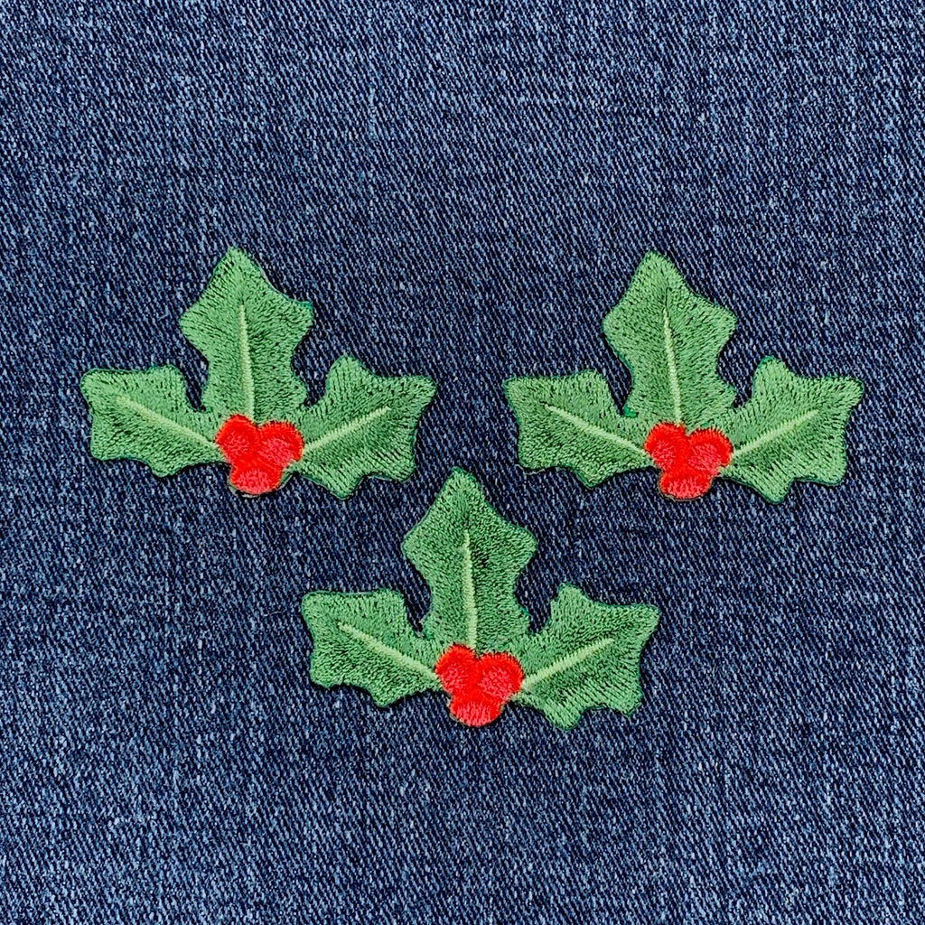 3-Pack Christmas Holly Applique Patch - Embroidered Holiday Badge 1.75" (Iron On)