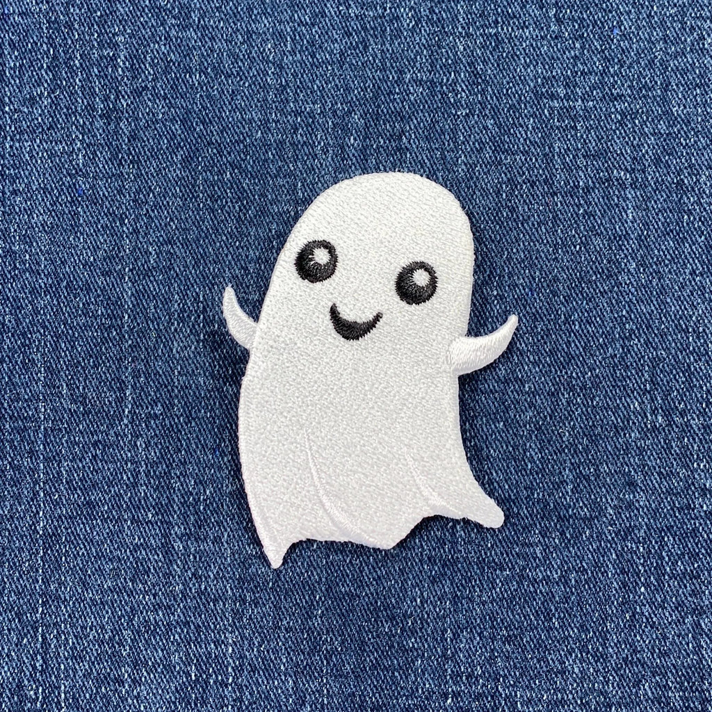 Ghost Applique Patch - Embroidered Smiling Ghoul Halloween Badge 2.75" (Clearance, Iron On)