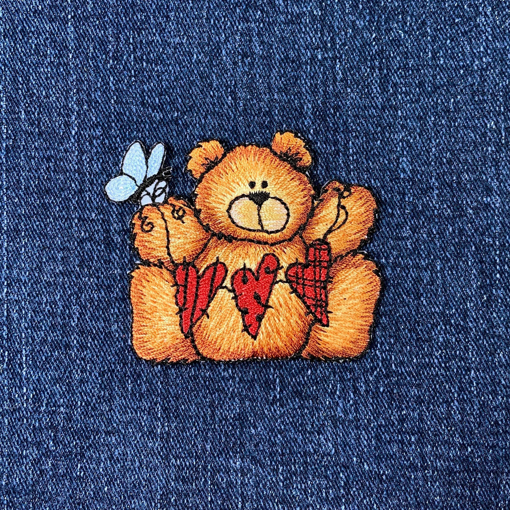 Bear & String of Hearts Applique Patch - Embroidered Dragonfly Animal Badge 2-3/8" (Iron On)