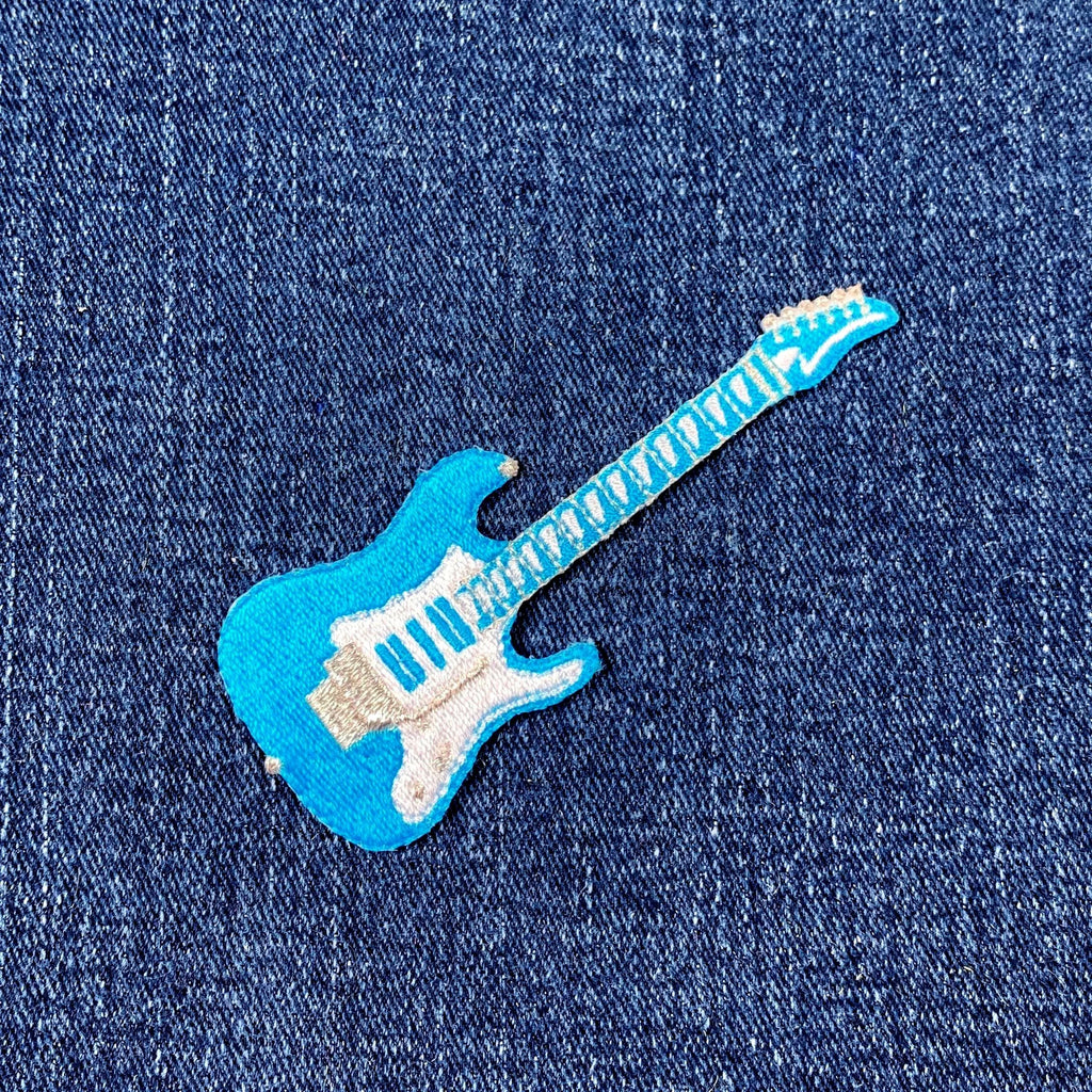 Blue Guitar Applique Patch - Embroidered Music Instrument Badge 3.25" (Iron On)