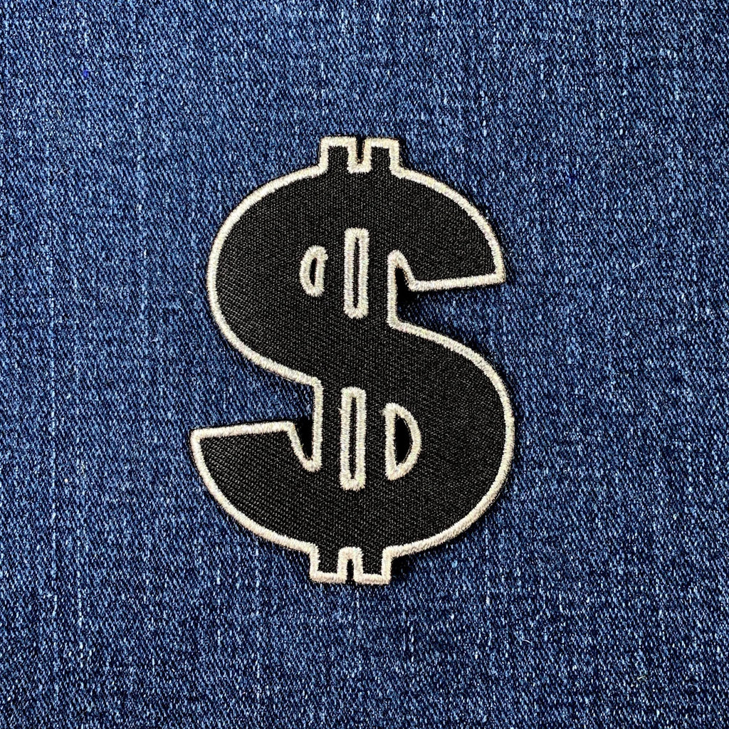 Dollar Sign Patch - Embroidered Black & Metallic Silver Money Badge 3" (Iron On)
