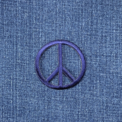 Navy Peace Sign Applique Patch - Embroidered Blue World Peace Badge 2" (Iron On)