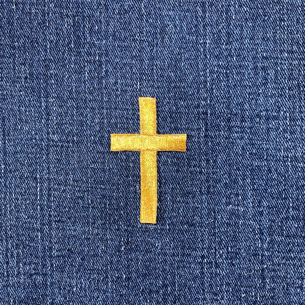Gold Cross Applique Patch - Embroidered Christ Jesus Badge 2" (Iron On)