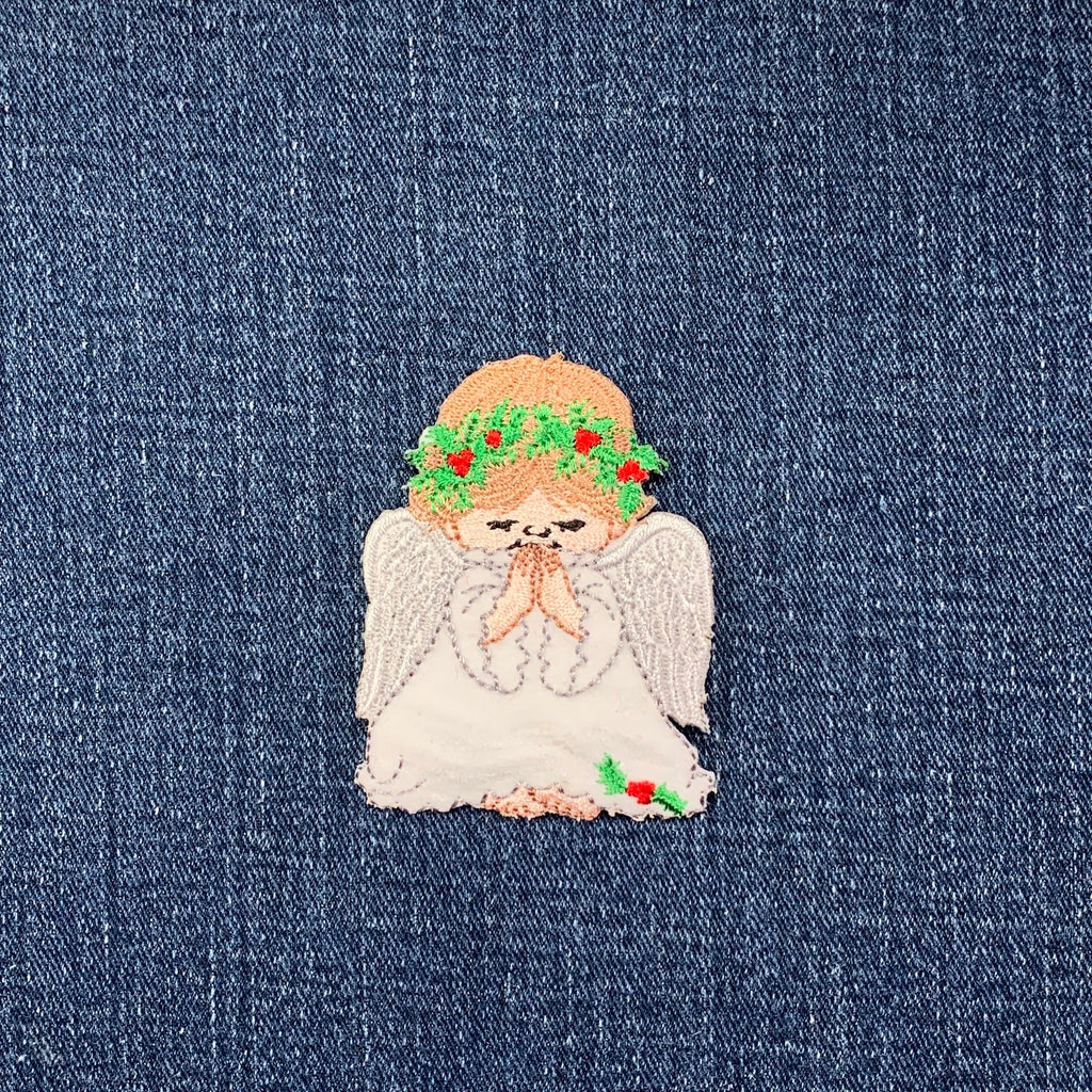 Praying Angel Applique Patch - Holly Crown Embroidered Christmas Badge 2.5" (Iron Or Sew On)