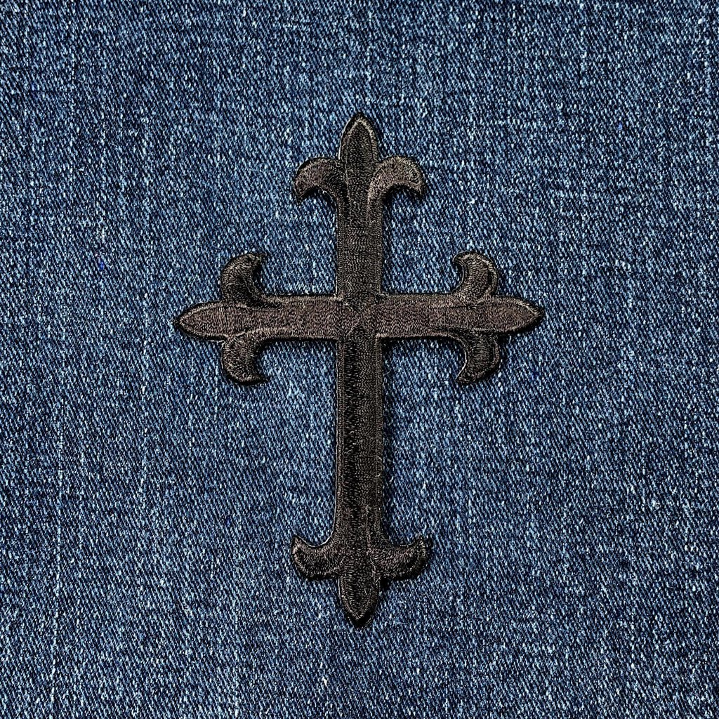 Black Cross Applique Patch - Embroidered Christian Jesus Badge 4" (Iron On)