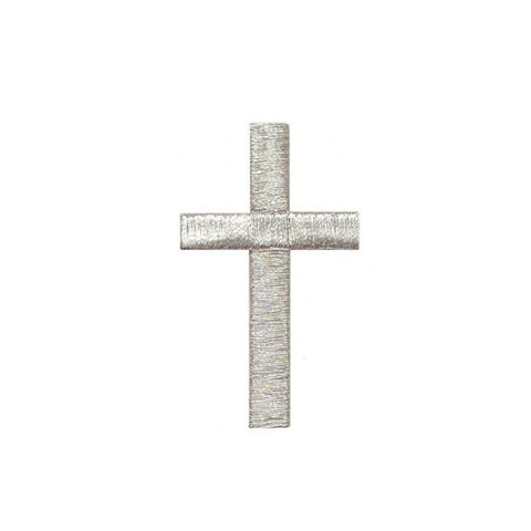 Silver Cross Applique Patch - Embroidered Christ Jesus Badge 2" (Iron On)