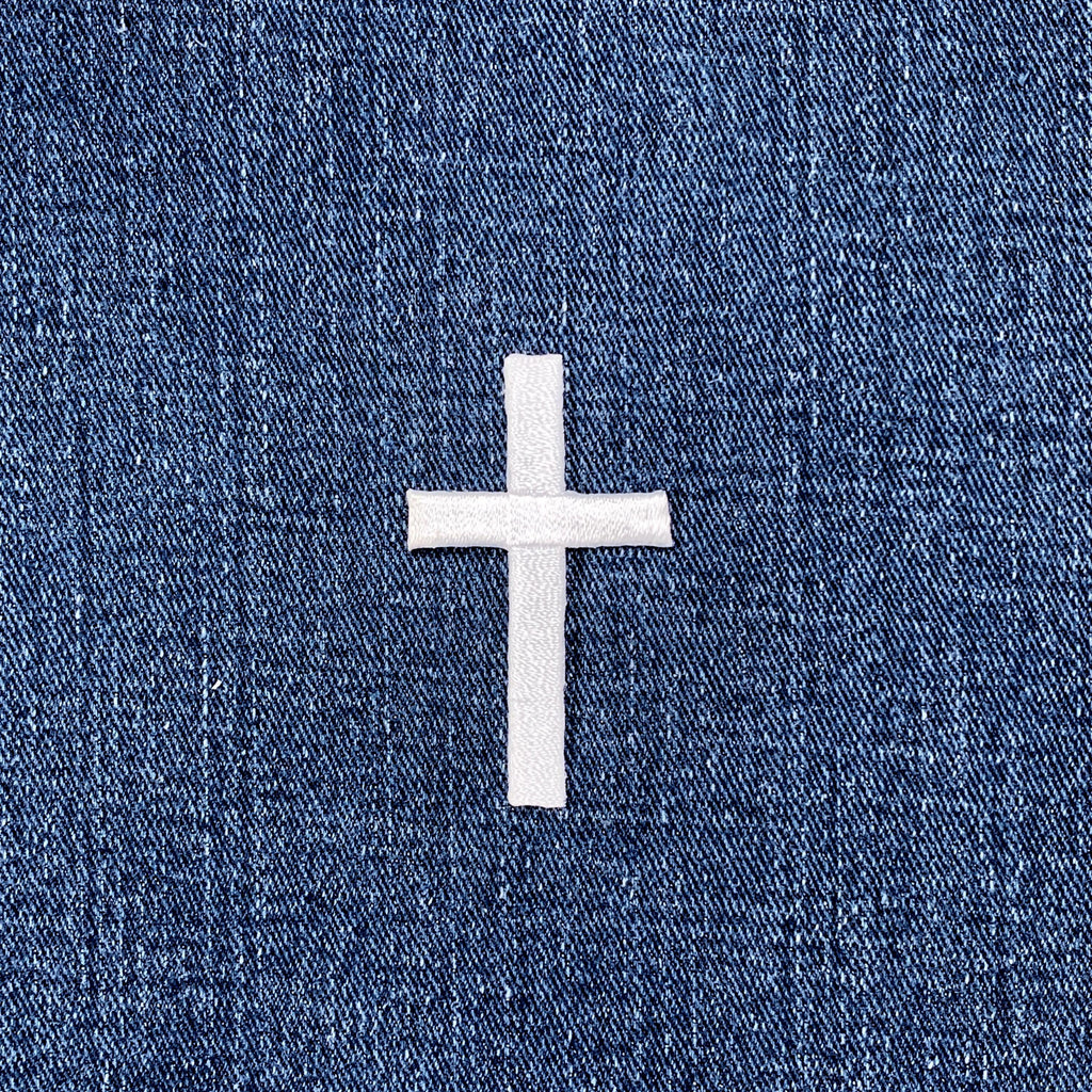 White Cross Applique Patch - Embroidered Christ Jesus Badge 2" (Iron On)