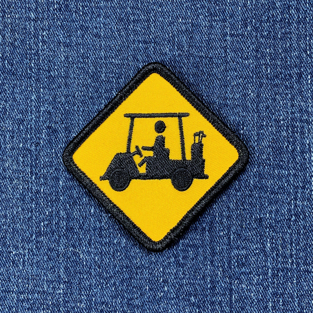 Golf Cart Crossing Patch - Embroidered Yellow Sign Badge 2-5/8" (Iron On)