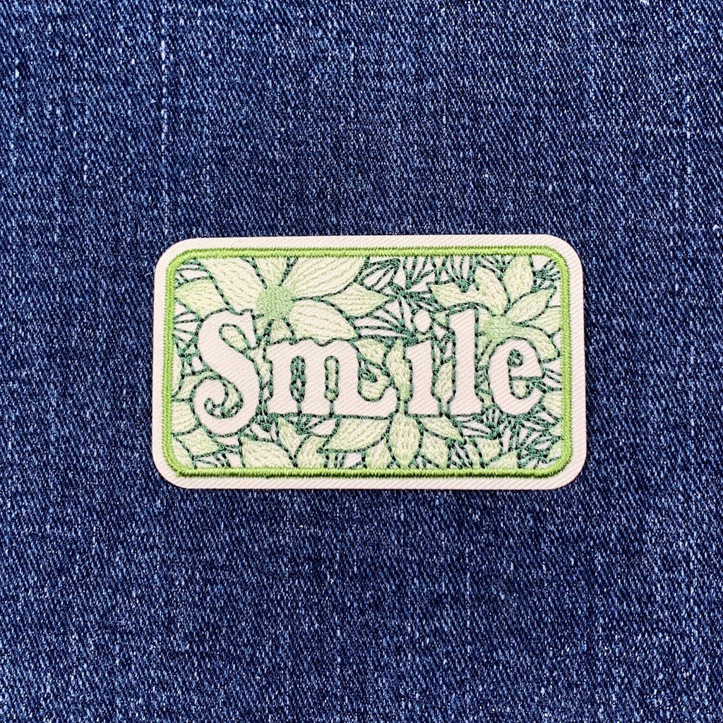 Smile Applique Patch - Embroidered Happy Flowers Badge 2.5" (Iron On)