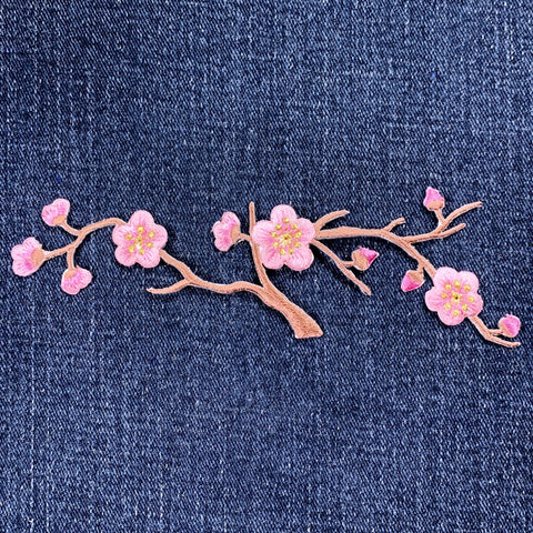 Cherry Tree Applique Patch - Embroidered Branch & Flowers Badge 5.75" (Iron On)