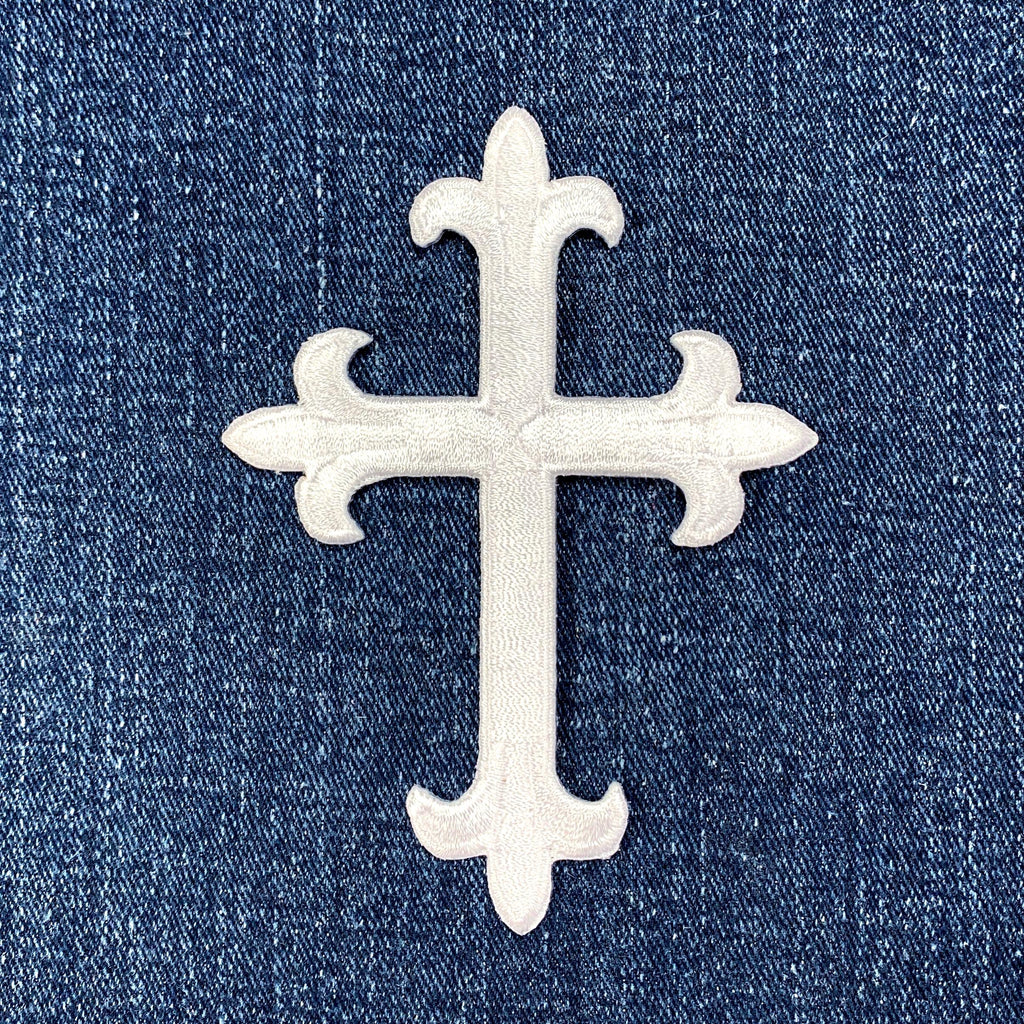Large White Cross Applique Patch - Embroidered Christ Jesus Badge 4" (Iron On)