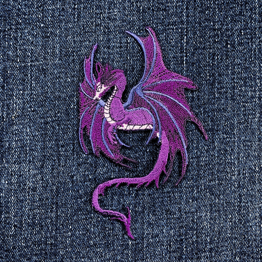 Purple Fantasy Dragon Applique Patch - Embroidered Good Luck Power Strength Badge 4" (Iron On)